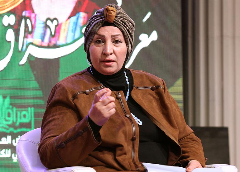 وأضافت ان «الرسالة الى الأجيال من النساء وهن داخل هذا المؤثر الكبير والخطير، اننا نعاين الإرث الأصيل الذي لدينا في تجربتين مهمتين في الواقع العربي ومن الرائع ان كلاهما في البيئة العراقية، أولهما تجربة المرأة في الأثر السومري والثاني هو التجربة في الثقافة العباسية فهذان العصران توافرت فيهما تجربة مميزة جدا للمرأة ولم تكن مستوردة لافكار من حضارات أخرى».